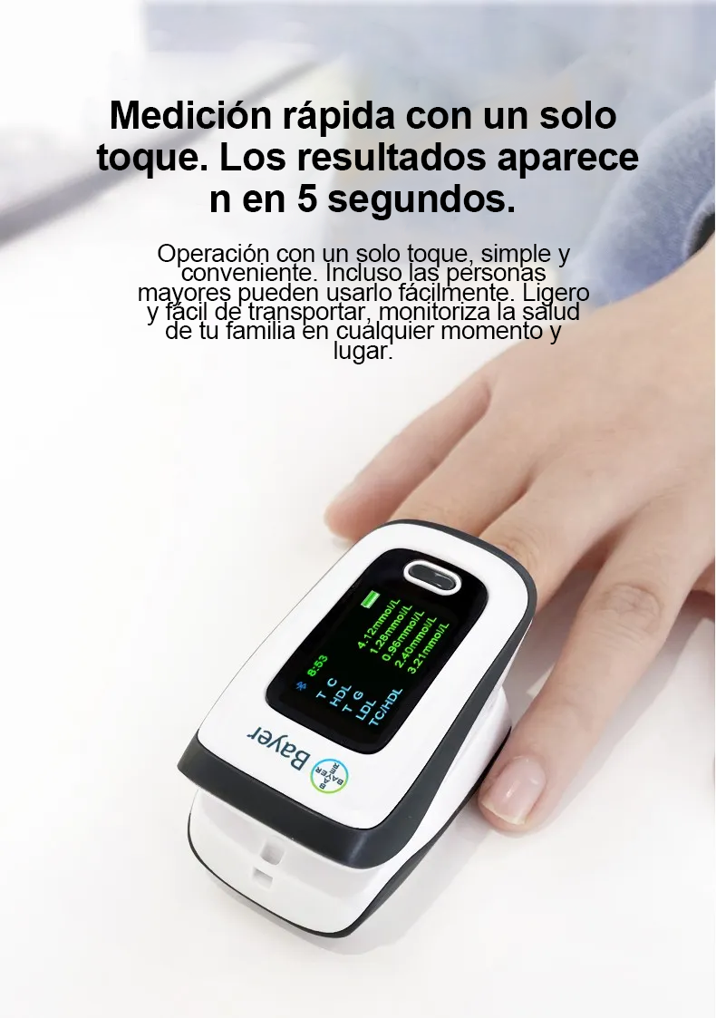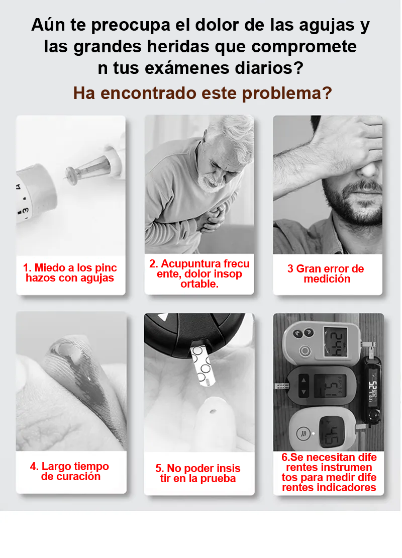 Tecnología de medición única y no invasiva, no requiere toma de muestras de sangre, es no invasiva e indolora, más fácil y cómoda de usar. mantener una buena salud.