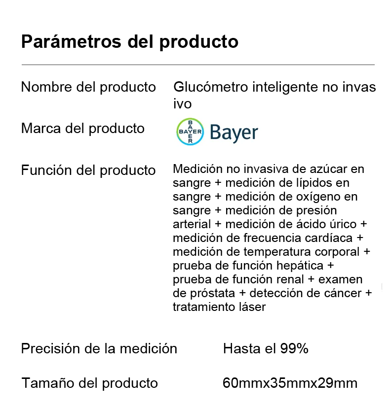 Para ayudar a más personas a prevenir la diabetes, Bayer HealthCare dedicó cinco años al desarrollo de este medidor de glucosa en sangre no invasivo y multiusos [12 en 1]. Cuando se lanzó el producto, se preordenó a un precio muy bajo para apoyar a la comunidad. Solo una compra por persona. La oferta es válida hasta fin de mes, así que pídelo ya.